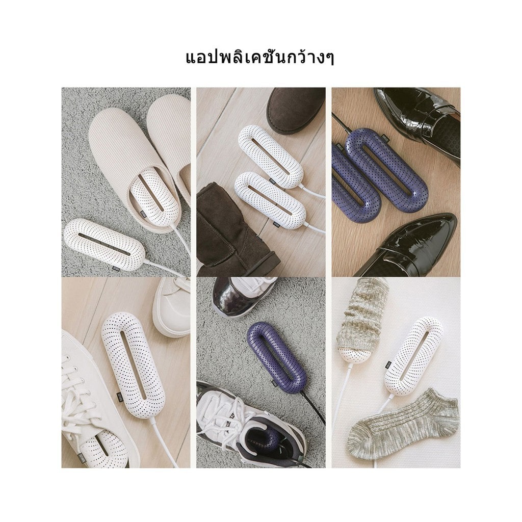 - เสียบปลั๊ก (220V-50Hz) และวางเครื่องในรองเท้า